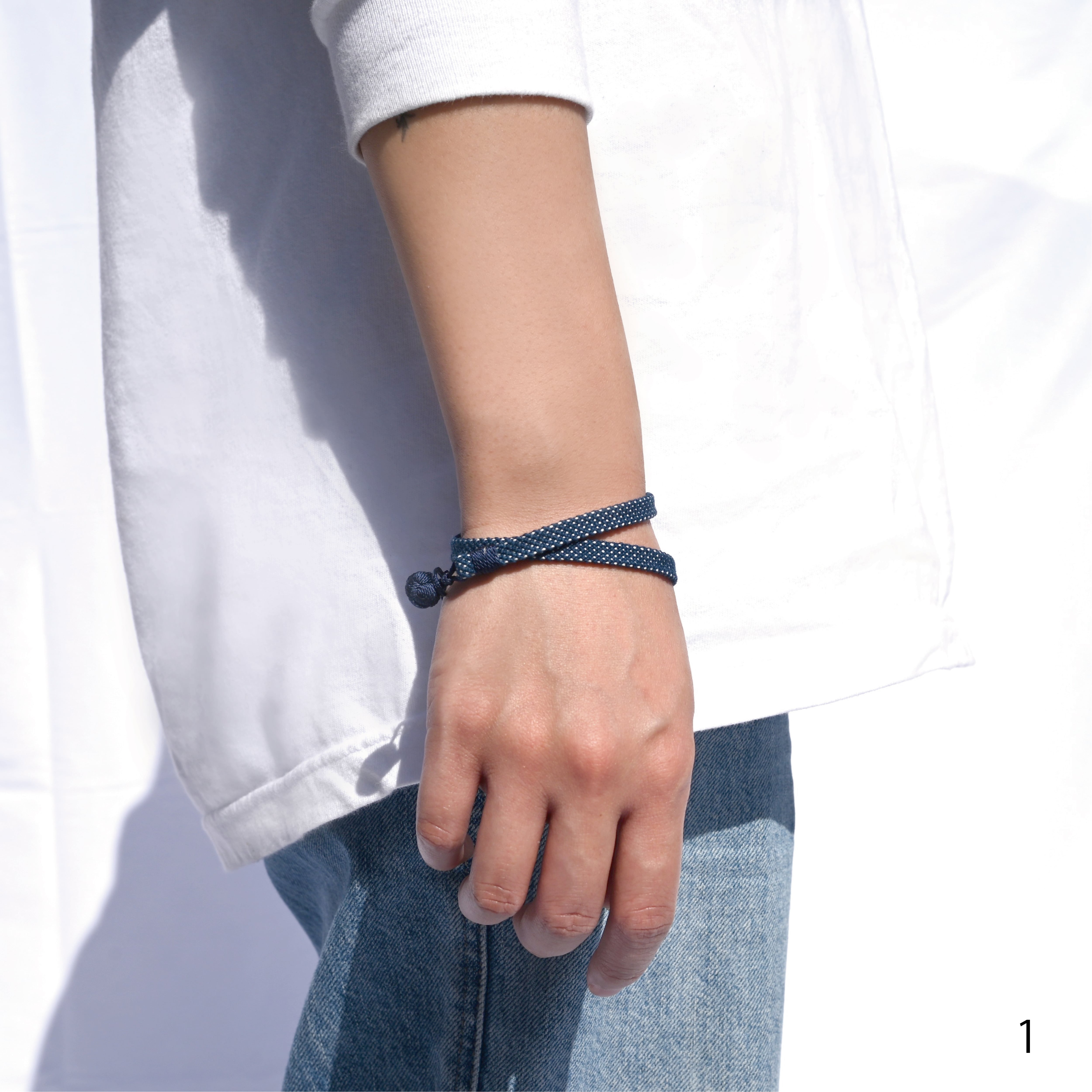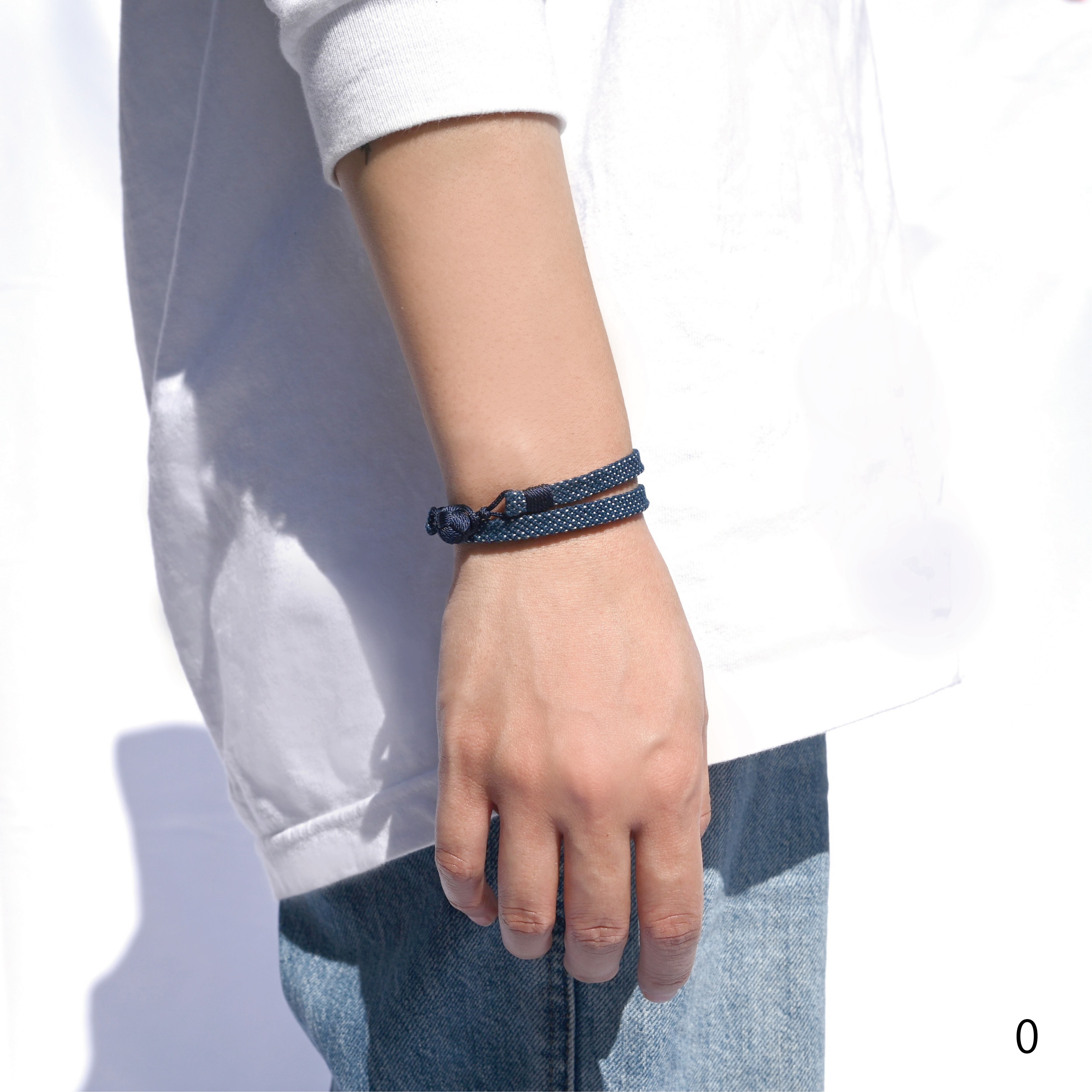 京都で藍染の原料となる藍の栽培から蒅造り、染色、制作をおこなうDraw Dots Dawnが展開する「omomuki」が京都宇治の昇苑くみひもに別注した京くみひものOmamori。